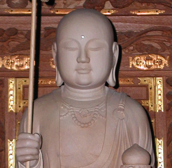 地蔵菩薩は、修行者の姿をしています。これは何処へでも出向き、錫杖にて諸魔を払い、宝珠にて諸願を満たすという誓願の現れです。特に子供やお年寄り、そして弱い立場の者を護り、導いて下さる仏さまです。 どなた様も、境内ご自由に参拝できます。地蔵菩薩のご真言「オンカカカビサンマエイソワカ」をお唱えし、心をこめてお参りください。