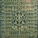 当山中興第1世・憲明上人の600年御遠忌の記念として造立されました。成田山新勝寺の「平成大曼荼羅」を図画したことでも名高い、仏画家・松尾栄画伯の作です。一枚の絹地に画かれた金泥の曼荼羅としては、まれに見る大きさと言われます。