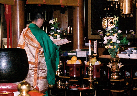 人生の締めくくりとなる、最後のお旅立ちが、ご本尊に導かれ、どうか安らかでありますように。亡き方の菩提を願い、引導・読経を勤めております。