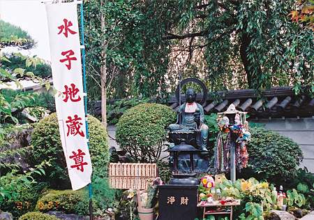 境内には、ご両親にかわって、赤ちゃんを育ててくださる「水子地蔵」が安置されています。