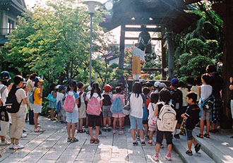 青少年の健全育成を願い、昭和五十五年(1980)より行われている夏の恒例行事です。夏休みの一日、子供たちにお寺を開放し、仏教に親しんでもらうため、小学生を対象として行っています。座禅や発心式のほか、お楽しみ会・昼食など、有意義な日程となっています。